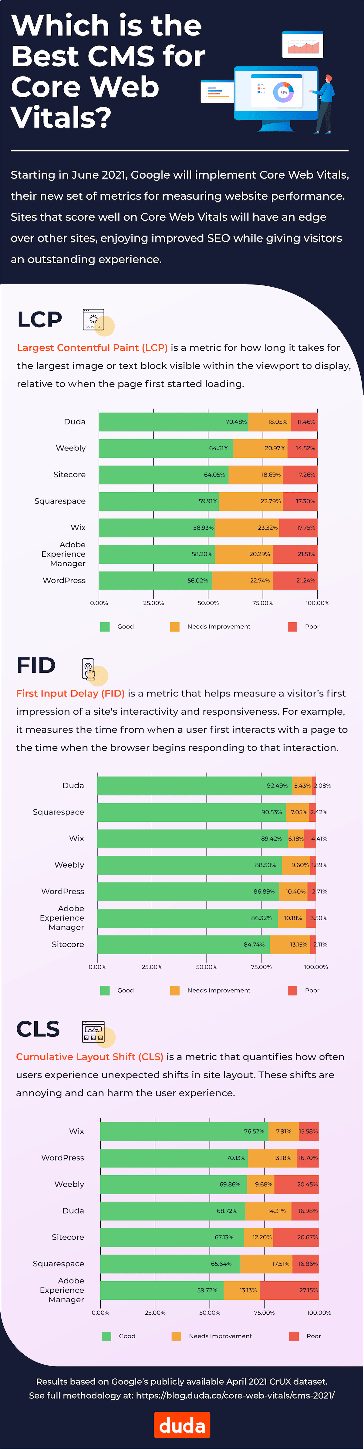 Other factors like server speed, CSS, Javascript and client-side rendering can all play a part. Largest Contentful Paint (LCP): measures loading performance. To provide a good user experience, LCP should occur within 2.5 seconds of when the page first starts loading.