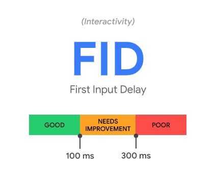 First Input Delay (FID): measures interactivity. To provide a good user experience, pages should have an FID of less than 100 milliseconds.